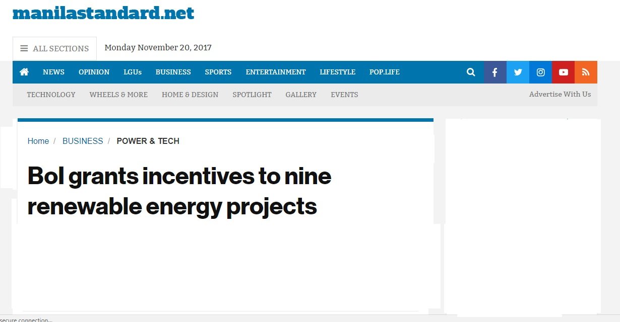 The Board of Investments approved nine renewable energy projects with a combined cost of P26.7 billion after qualifying for incentives under the Renewable Energy Act and the special laws list of the 2017 Investment Priorities Plan.